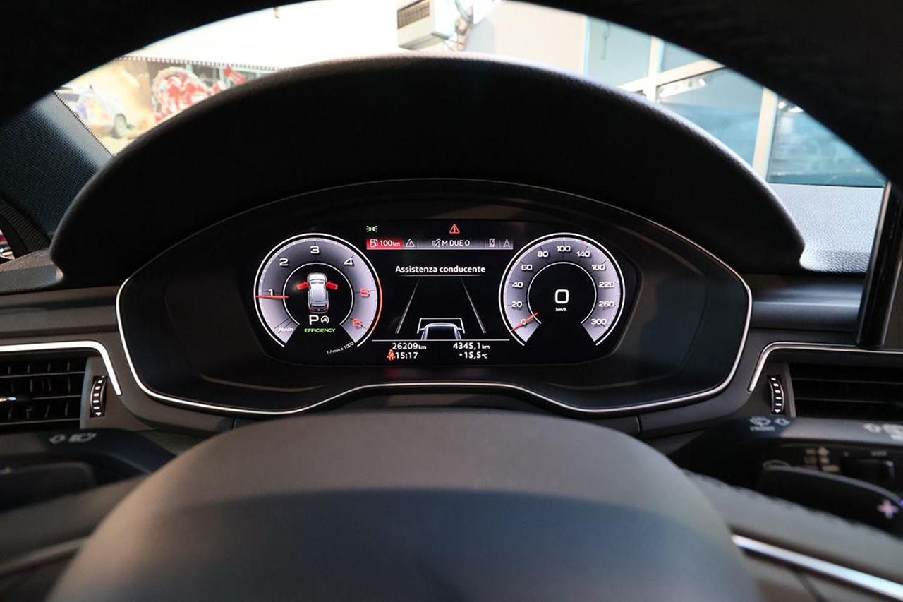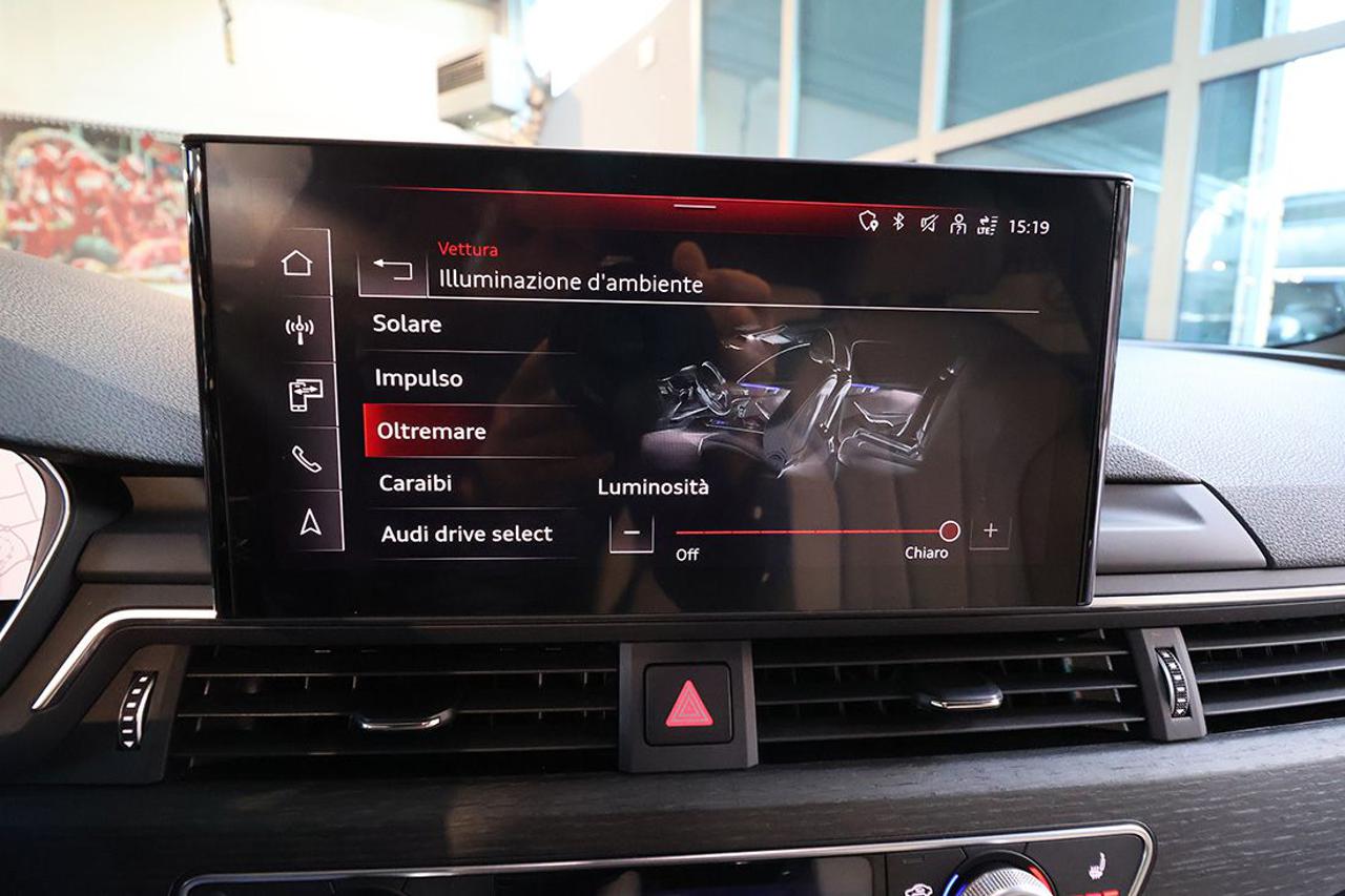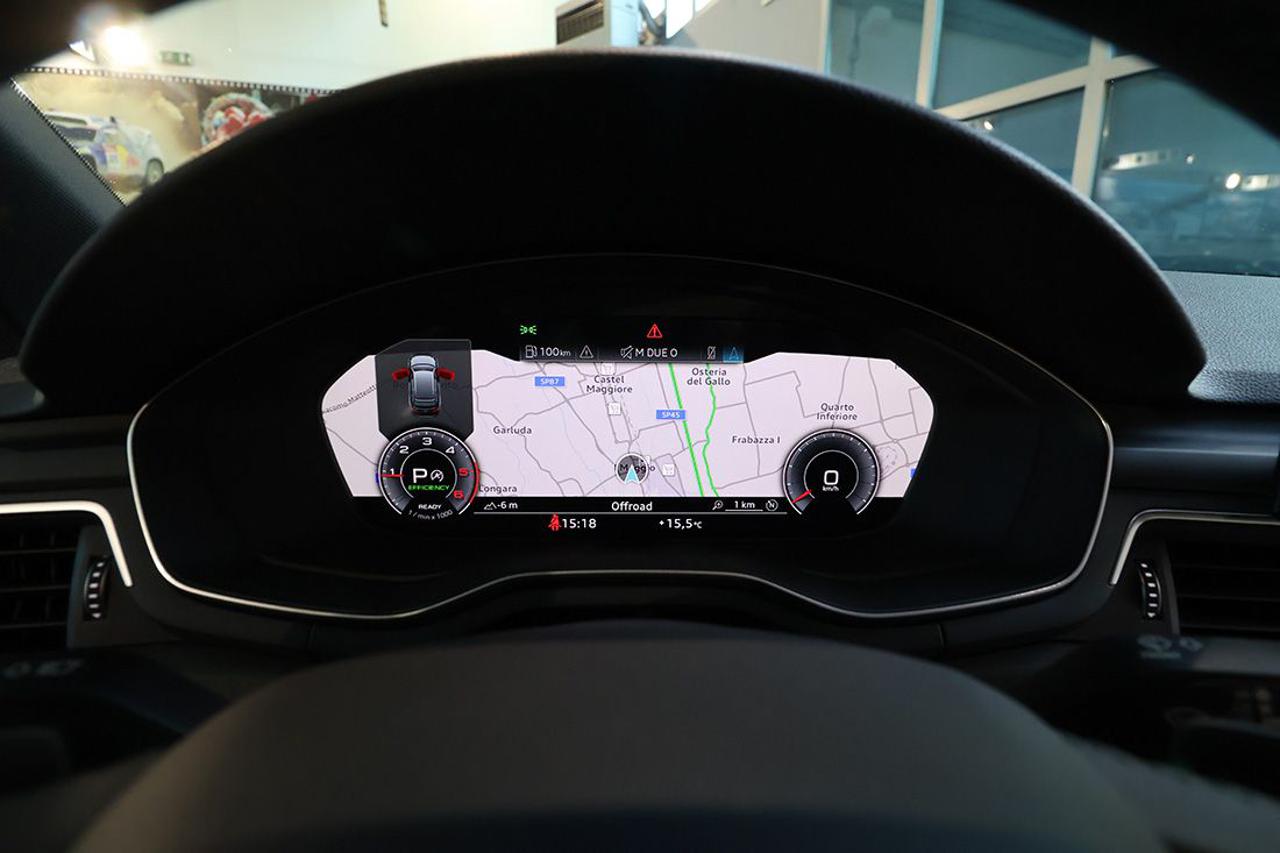 Cambio automatico S-Tronic Adaptive Cruise Control Assistente al parcheggio Assistenza alla partenza Audi Active Lane Assist Audi connect Navigation & Infotainment plus Audi Drive Select Audi Pre-Sense Audi Smartphone Interface Audi Sound System Audi Virtual Cockpit plus Bracciolo centrale anteriore comfort Bracciolo posteriore con dispositivo per il carico passante Cerchi in lega Audi Sport 19" a 5 razze doppie con inserti in grigio opaco Chiave comfort con sbloccaggio portellone vano bagagli tramite sensori Chiusura di sicurezza per bambini ad azionamento elettrico Cielo in tessuto Nero Climatizzatore automatico comfort a 3 zone Collision Avoid Assist Dispositivo di assistenza per proiettori abbaglianti Elementi interni in ecopelle Impianto Bluetooth Ingresso USB Inserti in rovere grigio naturale Lavafari Mancorrenti cromati al tetto Maniglie esterne delle portiere cromate Navigatore satellitare MMI Plus con MMI Touch Pacchetto assistenza Tour Pacchetto look alluminio esterno Pacchetto luci ambiente e profilo, multicolore Portellone vano bagagli ad apertura e chiusura elettrica Prese USB (2) al posteriore Proiettori a LED Audi Matrix con gruppi ottici posteriori a LED Radio digitale DAB Retrovisori esterni ed interno autoanabbaglianti Retrovisori esterni ripiegabili elettricamente e riscaldabili con funzione Memory Riconoscimento della segnaletica stradale Ruota di scorta ripiegabile con compressore Sedili anteriori regolabili elettricamente con funzione Memory Sedili anteriori riscaldabili elettricamente Sedili sportivi Sensore luci Sensore pioggia Sistema di ausilio al parcheggio plus, anteriore e posteriore Sistema di controllo pressione pneumatici Sistema di controllo velocità in discesa Sistema Isofix al sedile passeggero anteriore Sistema Isofix con disattivazione airbag passeggero Sistema per la chiamata di emergenza Specchietti di cortesia illuminati Streaming audio Bluetooth Supporto lombare con regolazione pneumatica e funzione massaggio Telecamera posteriore Telecamere a 360° Traffic Jam Assist Turn Assist Verniciatura a contrasto Vetri posteriori e lunotto oscurati Voice control Volante sportivo multifunzione plus con bilanceri