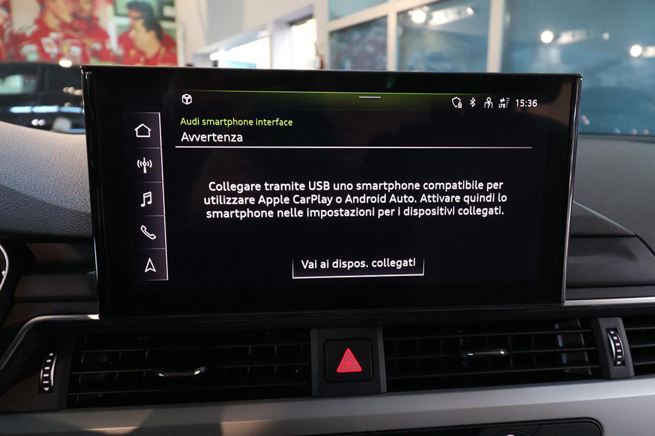 Cambio automatico S-Tronic Audi Drive Select Audi Pre-Sense Audi Smartphone Interface Bracciolo posteriore con dispositivo per il carico passante Cerchi in lega 17" a 15 razze Climatizzatore automatico Impianto Bluetooth Ingresso USB Mancorrenti al tetto Portellone vano bagagli ad apertura e chiusura elettrica Predisposizione per gancio di traino Proiettori a LED Radio digitale DAB Regolatore di velocità Retrovisori esterni ed interno autoanabbaglianti Retrovisori esterni ripiegabili elettricamente e riscaldabili Sensore luci Sensore pioggia Sistema di ausilio al parcheggio Sistema di controllo pressione pneumatici Sistema di controllo velocità in discesa Sistema di informazioni per il conducente con display a colori Sistema Isofix con disattivazione airbag passeggero Sistema per la chiamata di emergenza Specchietti di cortesia illuminati Streaming audio Bluetooth Supporto lombare elettrico Vetri posteriori e lunotto oscurati Voice control Volante sportivo multifunzione in pelle