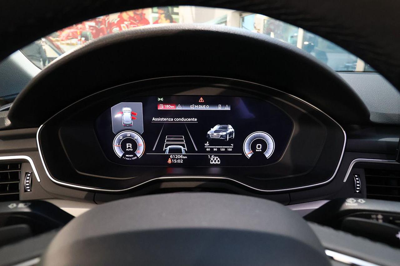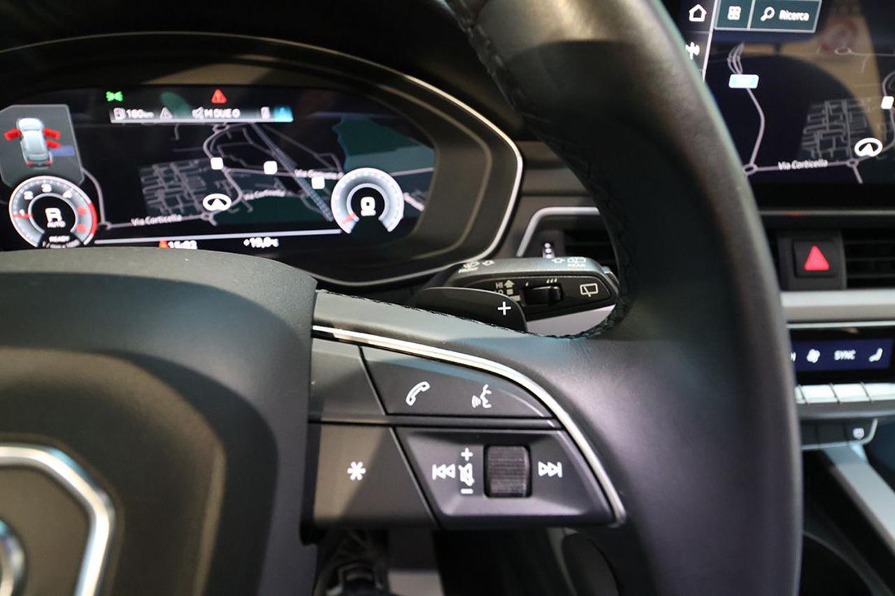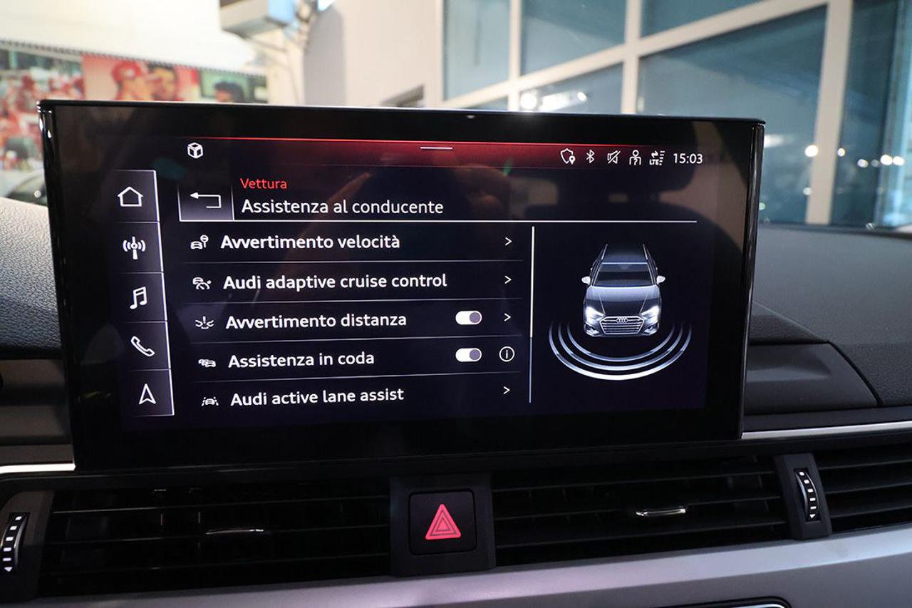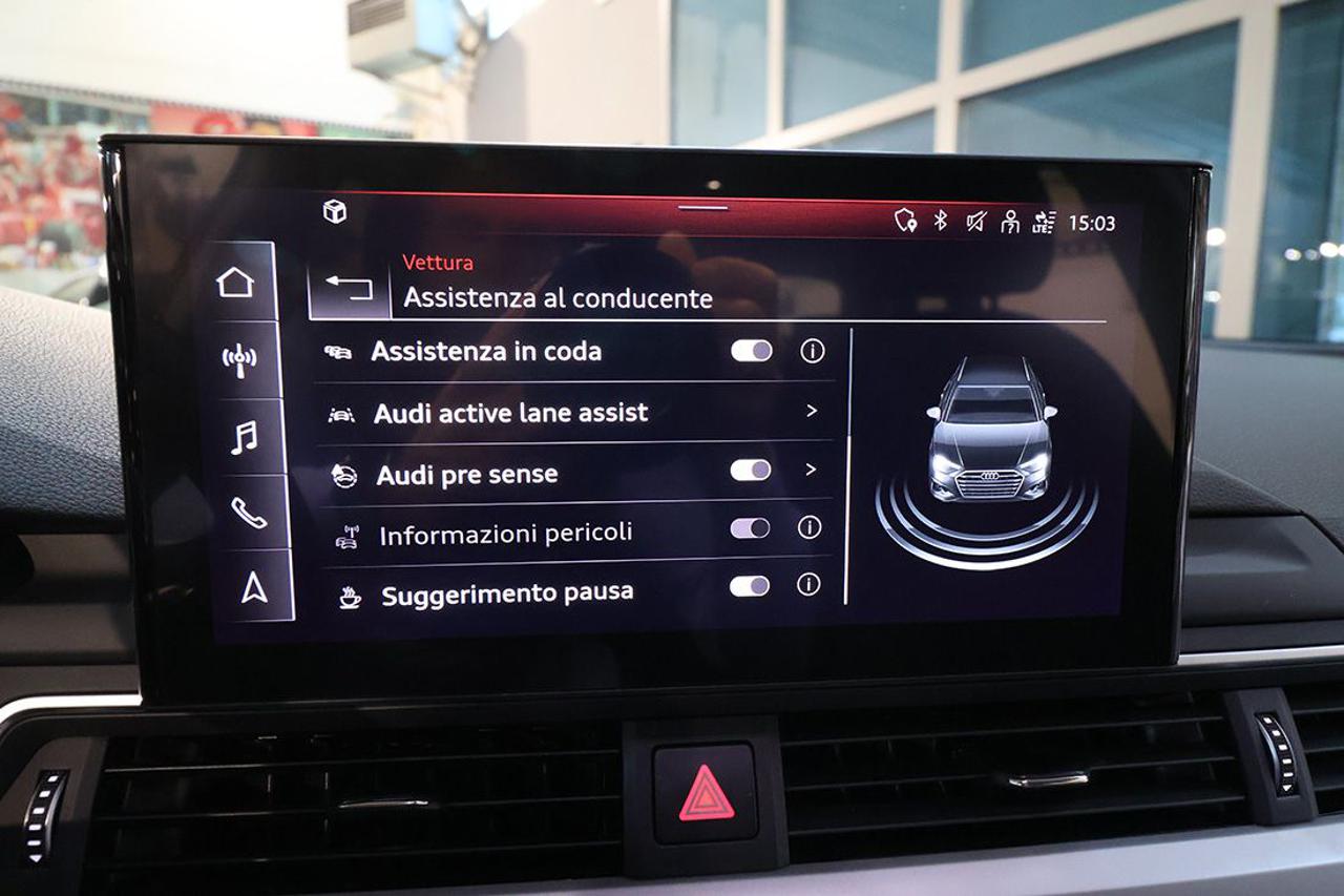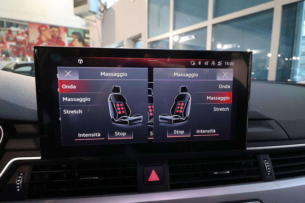 Cambio automatico S-Tronic Adaptive Cruise Control Antifurto Audi Active Lane Assist Audi connect Navigation & Infotainment plus Audi Drive Select Audi Pre-Sense Audi Smartphone Interface Audi Virtual Cockpit plus Bracciolo centrale anteriore comfort Bracciolo posteriore con dispositivo per il carico passante Cerchi in lega 17" a 5 razze Climatizzatore automatico comfort a 3 zone Collision Avoid Assist Dispositivo di assistenza per proiettori abbaglianti Impianto Bluetooth Ingresso USB Mancorrenti cromati al tetto Navigatore satellitare MMI Plus con MMI Touch Pacchetto assistenza Tour Pacchetto esterno lucido Proiettori a LED Radio digitale DAB Retrovisori esterni ed interno autoanabbaglianti Retrovisori esterni ripiegabili elettricamente e riscaldabili Riconoscimento della segnaletica stradale Sensore luci Sensore pioggia Sistema di ausilio al parcheggio plus, anteriore e posteriore Sistema di controllo pressione pneumatici Sistema Isofix con disattivazione airbag passeggero Sistema per la chiamata di emergenza Specchietti di cortesia illuminati Streaming audio Bluetooth Supporto lombare con regolazione pneumatica e funzione massaggio Traffic Jam Assist Turn Assist Voice control Volante sportivo multifunzione plus con bilanceri