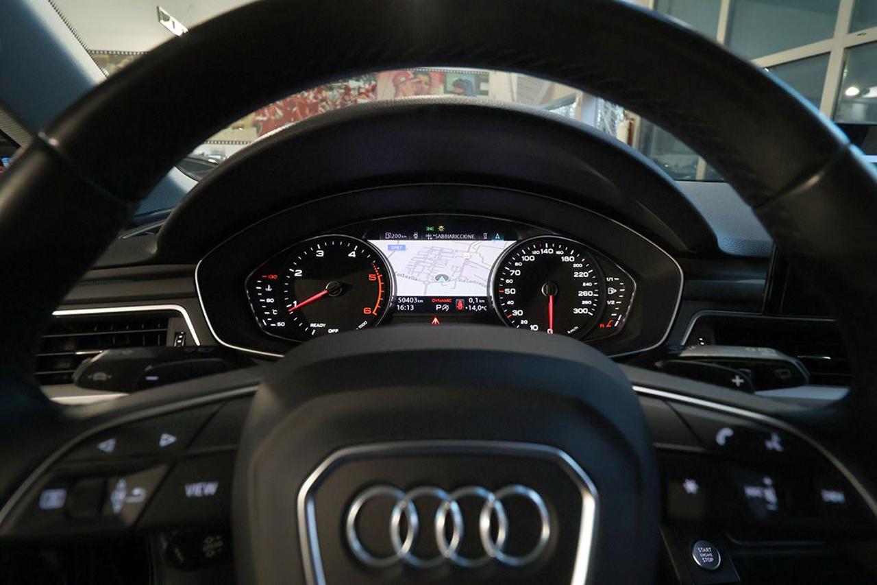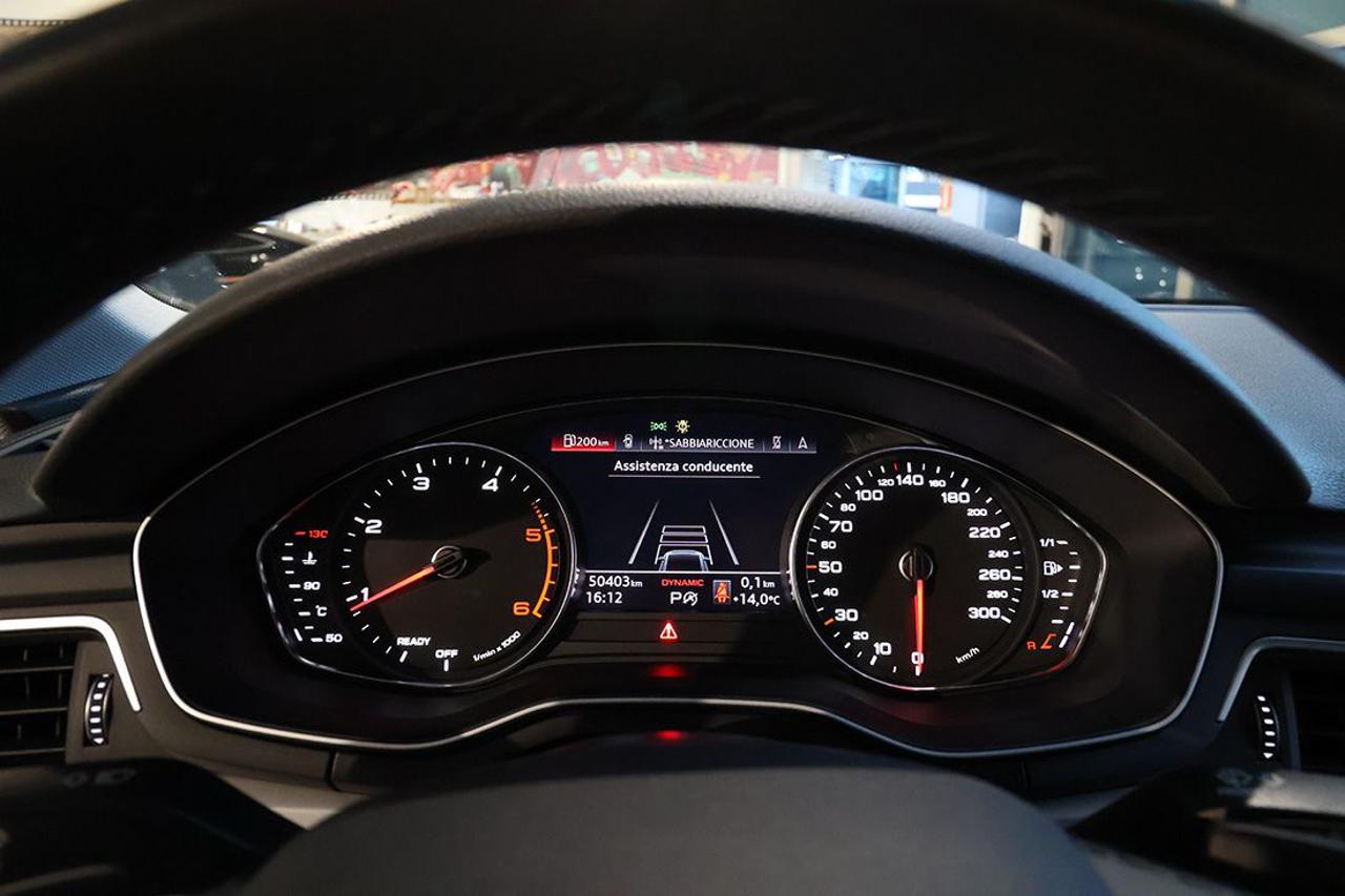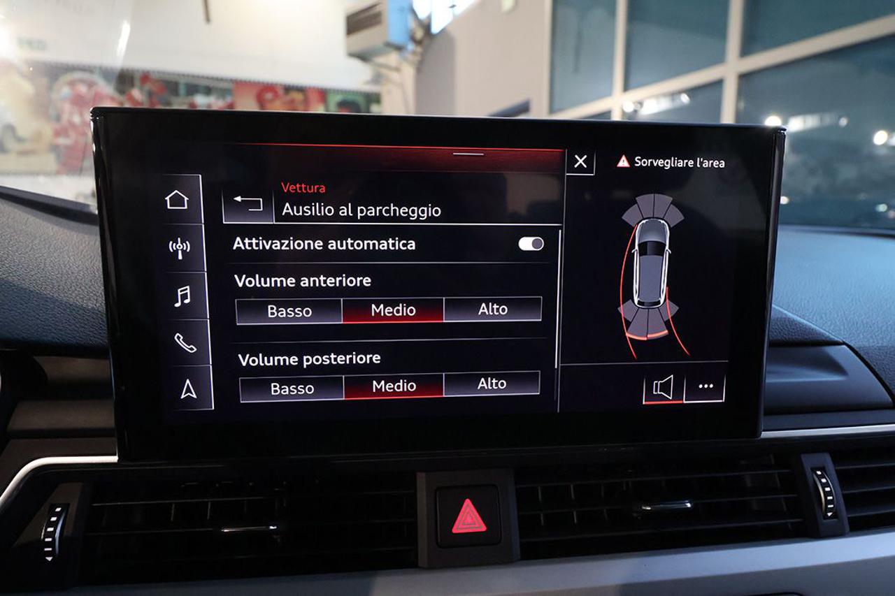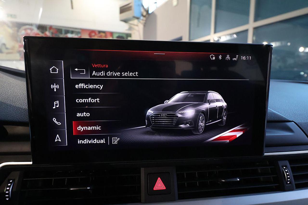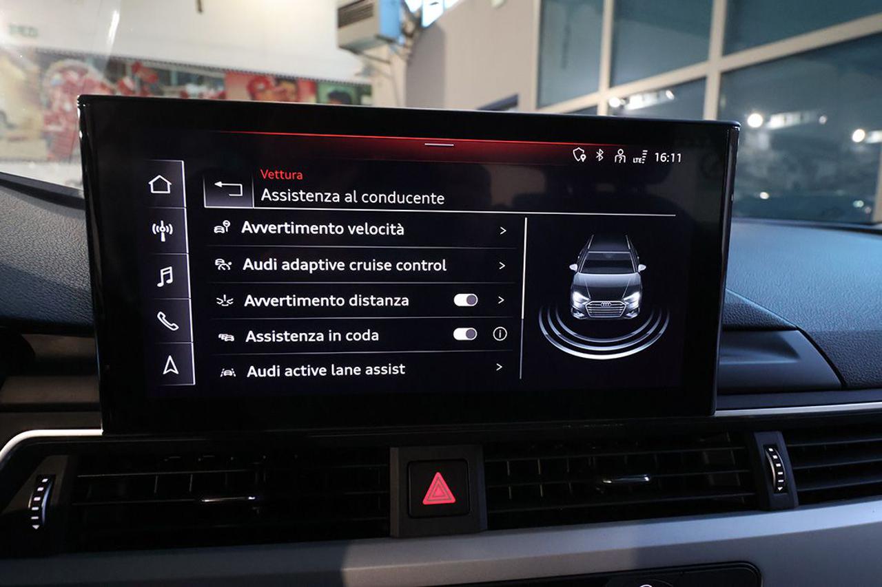 Cambio automatico S-Tronic Adaptive Cruise Control Audi Active Lane Assist Audi connect Navigation & Infotainment plus Audi Drive Select Audi Pre-Sense Audi Smartphone Interface Bracciolo posteriore con dispositivo per il carico passante Cerchi in lega 16" a 5 razze Climatizzatore automatico Collision Avoid Assist Dispositivo di assistenza per proiettori abbaglianti Impianto Bluetooth Ingresso USB Mancorrenti al tetto neri Navigatore satellitare MMI Plus con MMI Touch Pacchetto assistenza Tour Proiettori a LED Radio digitale DAB Retrovisori esterni ed interno autoanabbaglianti Retrovisori esterni ripiegabili elettricamente e riscaldabili Riconoscimento della segnaletica stradale Ruota di scorta minispare Sensore luci Sensore pioggia Sistema di ausilio al parcheggio plus, anteriore e posteriore Sistema di controllo pressione pneumatici Sistema Isofix con disattivazione airbag passeggero Sistema per la chiamata di emergenza Specchietti di cortesia illuminati Streaming audio Bluetooth Supporto lombare elettrico Traffic Jam Assist Turn Assist Voice control Volante sportivo multifunzione plus con bilanceri