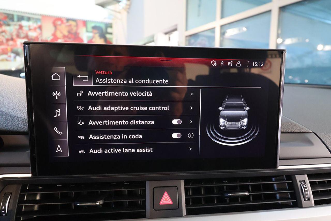 Cambio automatico S-Tronic Adaptive Cruise Control Appoggiabraccia centrale anteriore comfort Audi Active Lane Assist Audi connect Navigation & Infotainment plus Audi Drive Select Audi Pre-Sense Audi Smartphone Interface Audi Virtual Cockpit plus Bracciolo posteriore con dispositivo per il carico passante Cerchi in lega 17" a 5 razze Climatizzatore automatico Comfort a 3 zone Collision Avoid Assist Dispositivo di assistenza per proiettori abbaglianti Impianto Bluetooth Ingresso USB Mancorrenti cromati al tetto Navigatore satellitare MMI Plus con MMI Touch Pacchetto assistenza Tour Pacchetto esterno lucido Pacchetto luci Pacchetto Evolution Portellone vano bagagli ad apertura e chiusura elettrica Proiettori Full LED con gruppi ottici posteriori a LED Radio digitale DAB Retrovisori esterni ed interno autoanabbaglianti Retrovisori esterni ripiegabili elettricamente e riscaldabili Riconoscimento della segnaletica stradale Sensore luci Sensore pioggia Sistema di ausilio al parcheggio plus, anteriore e posteriore Sistema di controllo pressione pneumatici Sistema Isofix con disattivazione airbag passeggero Sistema per la chiamata di emergenza Specchietti di cortesia illuminati Streaming audio Bluetooth Supporto lombare elettrico Traffic Jam Assist Turn Assist Voice control Volante sportivo multifunzione plus con bilanceri