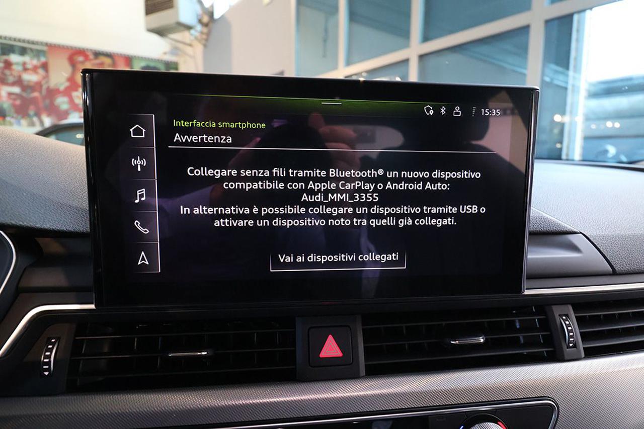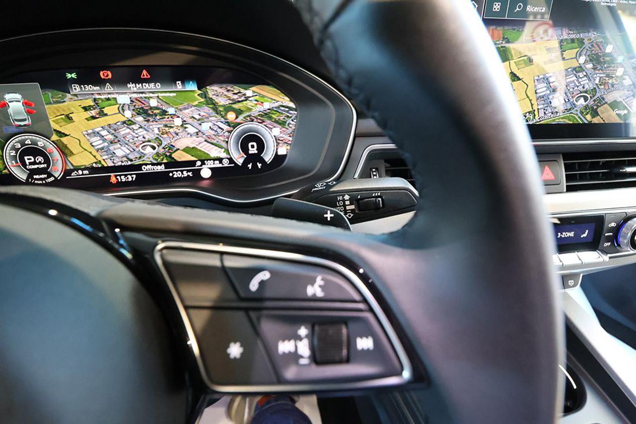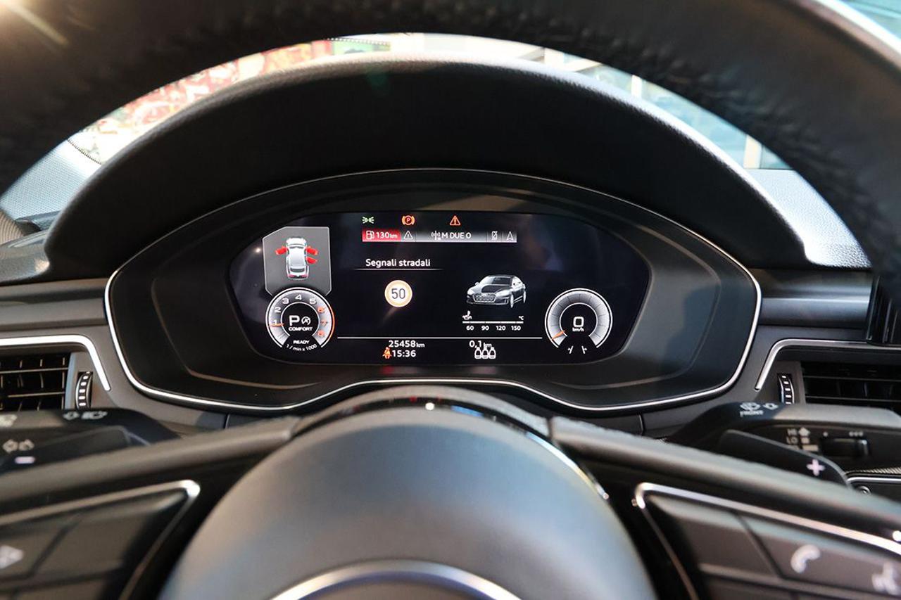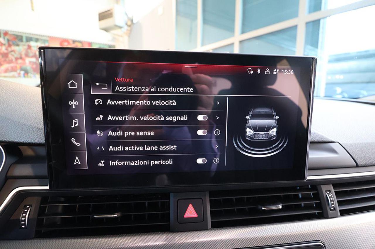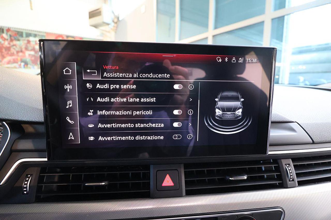 Cambio automatico S-Tronic Appoggiabraccia centrale anteriore comfort Assetto sportivo Assistenza alla partenza Audi Active Lane Assist Audi Phone Box light Audi Sound System Audi Virtual Cockpit plus Audi connect Navigation & Infotainment plus Audi Drive Select Audi Pre-Sense Audi Smartphone Interface Bracciolo posteriore con dispositivo per il carico passante Bulloni antifurto Cerchi in lega 19" razze Cavo design S, in grigio contrasto Climatizzatore automatico Comfort a 3 zone Impianto Bluetooth Ingresso USB Inserti in alluminio Ellipse argento Listelli sottoporta in alluminio con logo S, illuminati Navigatore satellitare MMI Plus con MMI Touch Pacchetto esterno lucido Pacchetto luci Pacchetto S-Line exterior Portellone vano bagagli ad apertura/chiusura elettrica Prese USB (2) al posteriore Proiettori a LED Radio digitale DAB Regolatore di velocità Retrovisori esterni ed interno autoanabbaglianti Retrovisori esterni ripiegabili elettricamente e riscaldabili Sedili sportivi Sensore luci Sensore pioggia Sistema di ausilio al parcheggio plus, anteriore e posteriore Sistema di controllo pressione pneumatici Sistema di riconoscimento della segnaletica stradale Sistema Isofix con disattivazione airbag passeggero Sistema per la chiamata di emergenza Specchietti di cortesia illuminati Streaming audio Bluetooth Supporto lombare elettrico Telecamera posteriore Voice control Volante sportivo multifunzione plus appiattito, con bilanceri