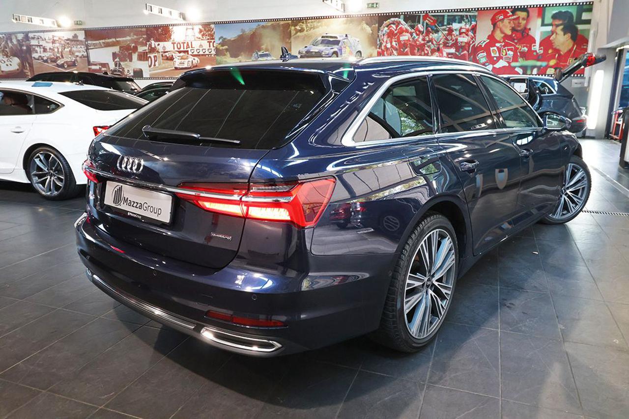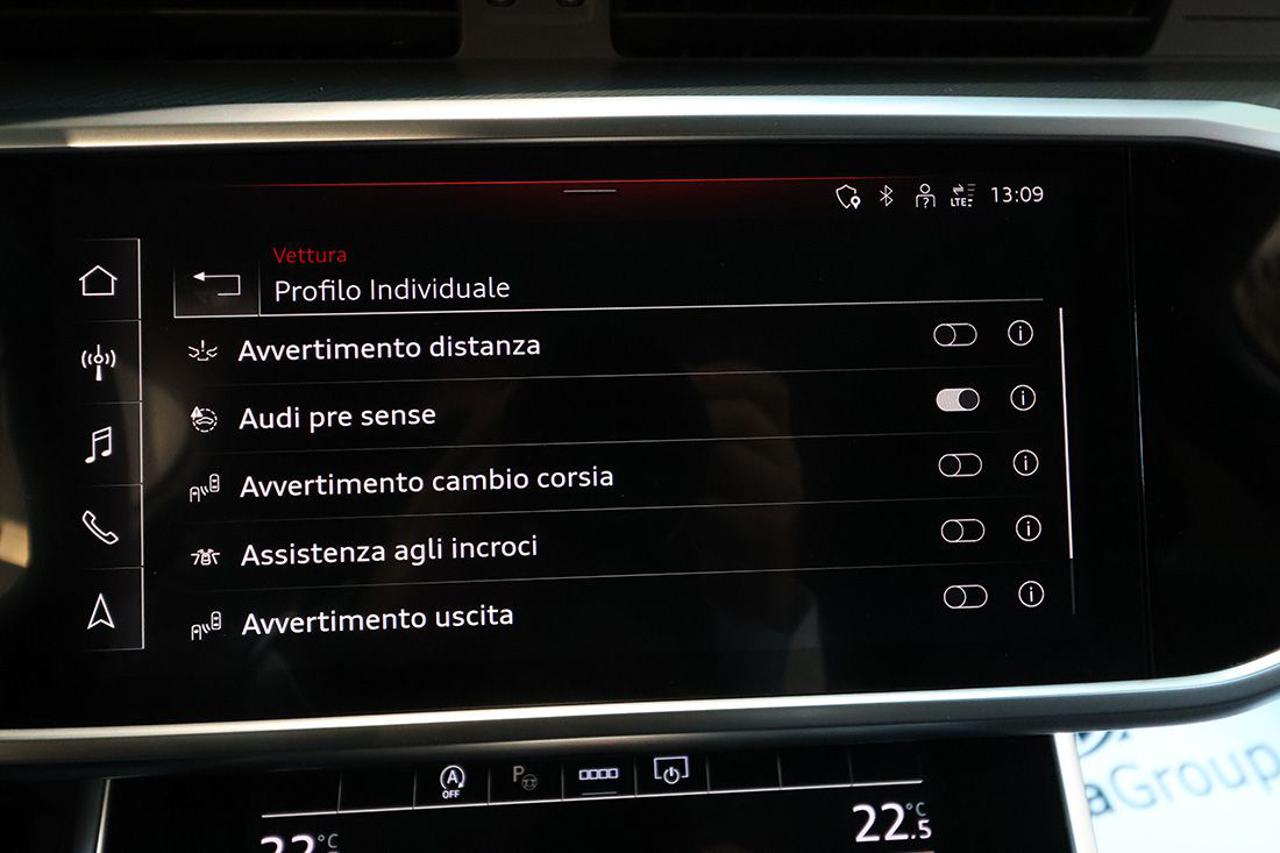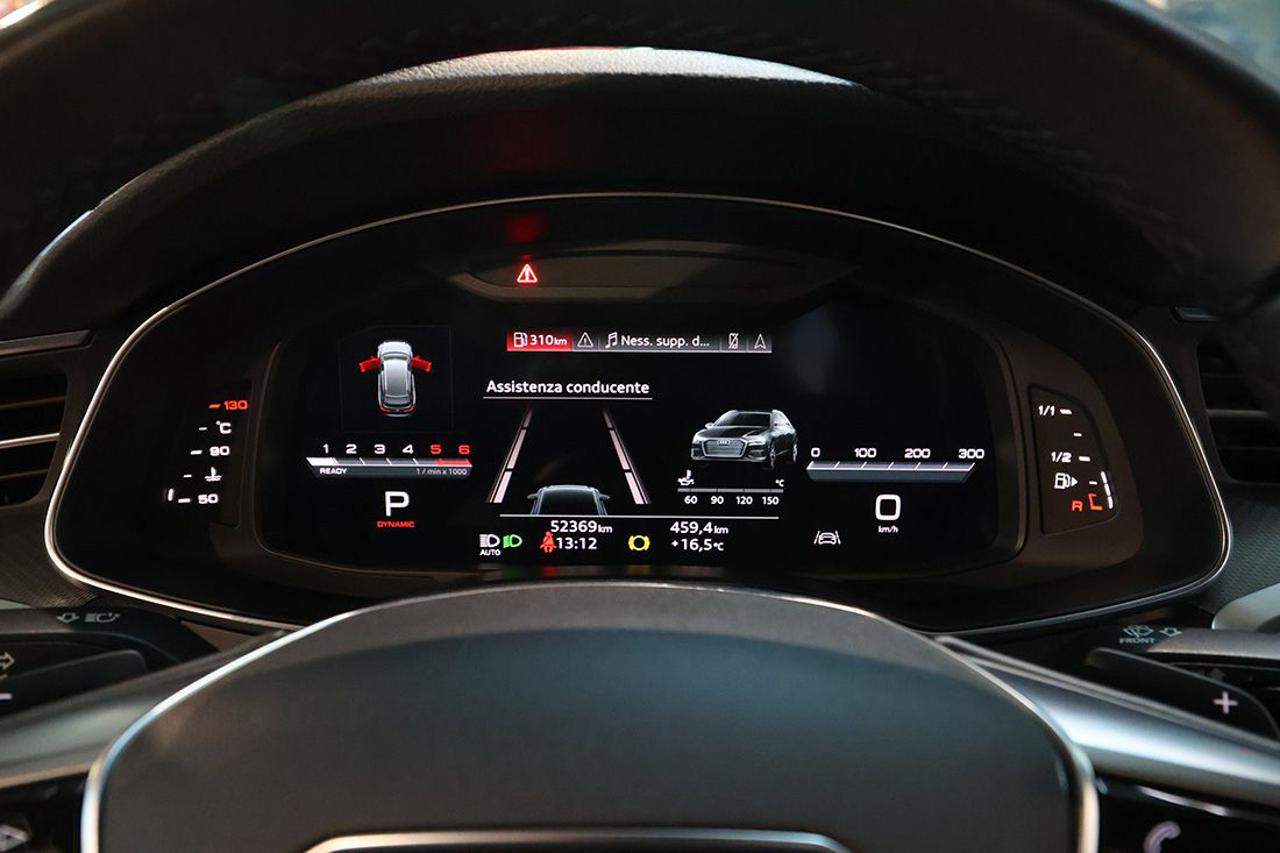 Cambio automatico S-Tronic Appoggiabraccia centrale anteriore comfort Assistente al parcheggio plus Audi connect Navigation & Infotainment Audi Drive Select Audi Phone Box Audi Pre Sense 360° Audi Smartphone Interface Audi Sound System Audi Virtual Cockpit plus Bracciolo posteriore con dispositivo per il carico passante Cerchi in lega 20" design 5 razze a V, grigio contrasto, parzialmente lucidi Chiave comfort con sbloccaggio portellone vano bagagli tramite sensori Climatizzatore automatico Comfort a 4 zone Crossing Assist Dispositivo di assistenza alla partenza Dispositivo di assistenza per proiettori abbaglianti Exit Warning Impianto Bluetooth Ingresso USB Inserti in alluminio Fragment Lane Change Warning con Audi Pre Sense rear Lane Departure Warning Lavafari Luci d'ingresso anteriori a LED con proiezione logo quattro anelli Mancorrenti cromati al tetto Navigatore satellitare MMI Plus con MMI touch response Pacchetto assistenza City Pacchetto luce diffusa in tecnica LED Pacchetto portaoggetti Porte USB tipo C posteriori con funzione di ricarica Portellone vano bagagli ad apertura e chiusura elettrica Proiettori a LED Radio digitale DAB Rear Cross Traffic Assist Regolatore di velocità Regolazione elettrica dei sedili anteriori con funzione Memory Retrovisori esterni ed interno schermabili automaticamente con funzione Memory Retrovisori esterni ripiegabili elettricamente e riscaldabili Riscaldamento dei sedili anteriori Ruota di scorta minispare Sensore luci Sensore pioggia Servochiusura per le portiere Sistema di ausilio al parcheggio Plus, anteriore, posteriore e laterale Sistema di controllo pressione pneumatici Sistema Isofix con disattivazione airbag passeggero Sistema per la chiamata di emergenza Streaming audio Bluetooth Supporto lombare elettrico Telecamera posteriore Telecamere a 360° Ventilazione dei sedili anteriori Vetri posteriori e lunotto oscurati Voice control Volante sportivo multifunzione appiattito, con bilanceri