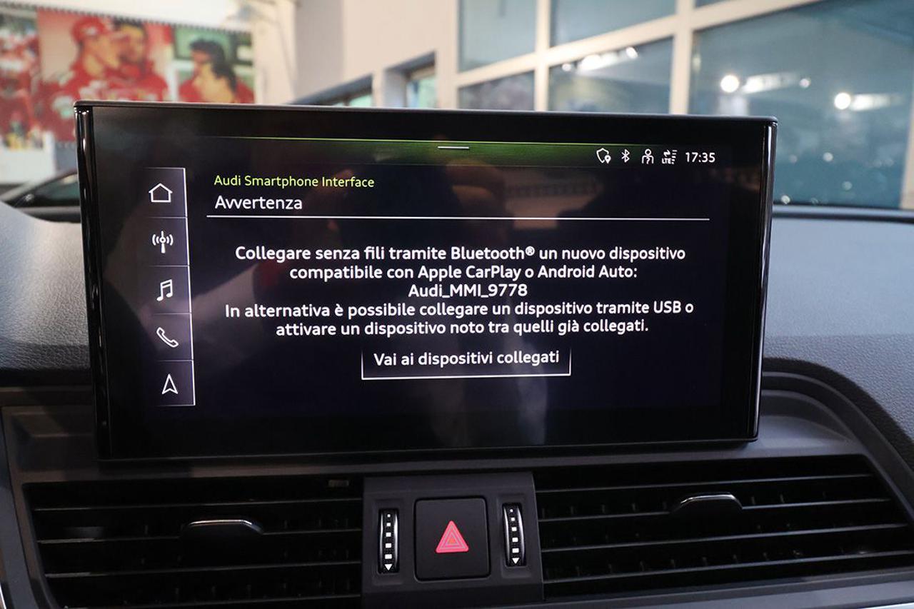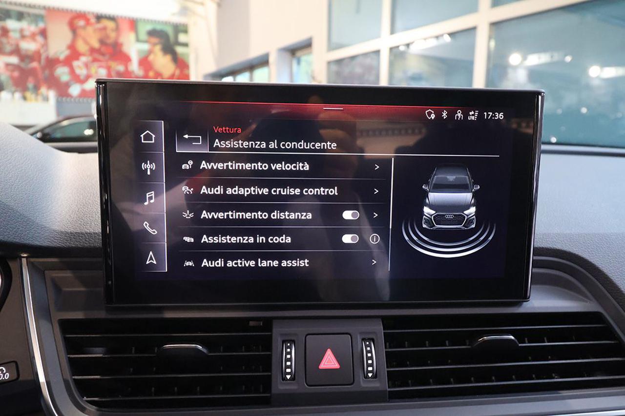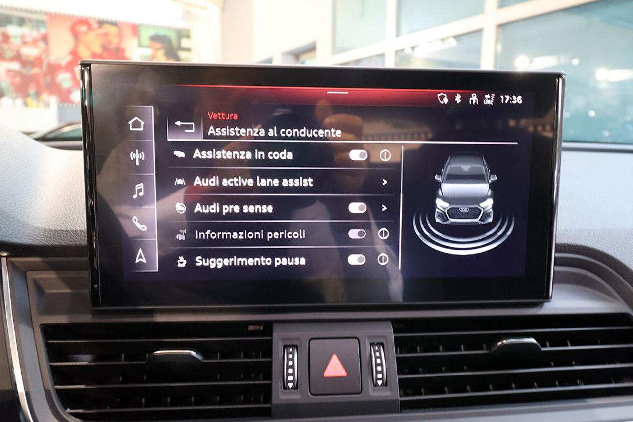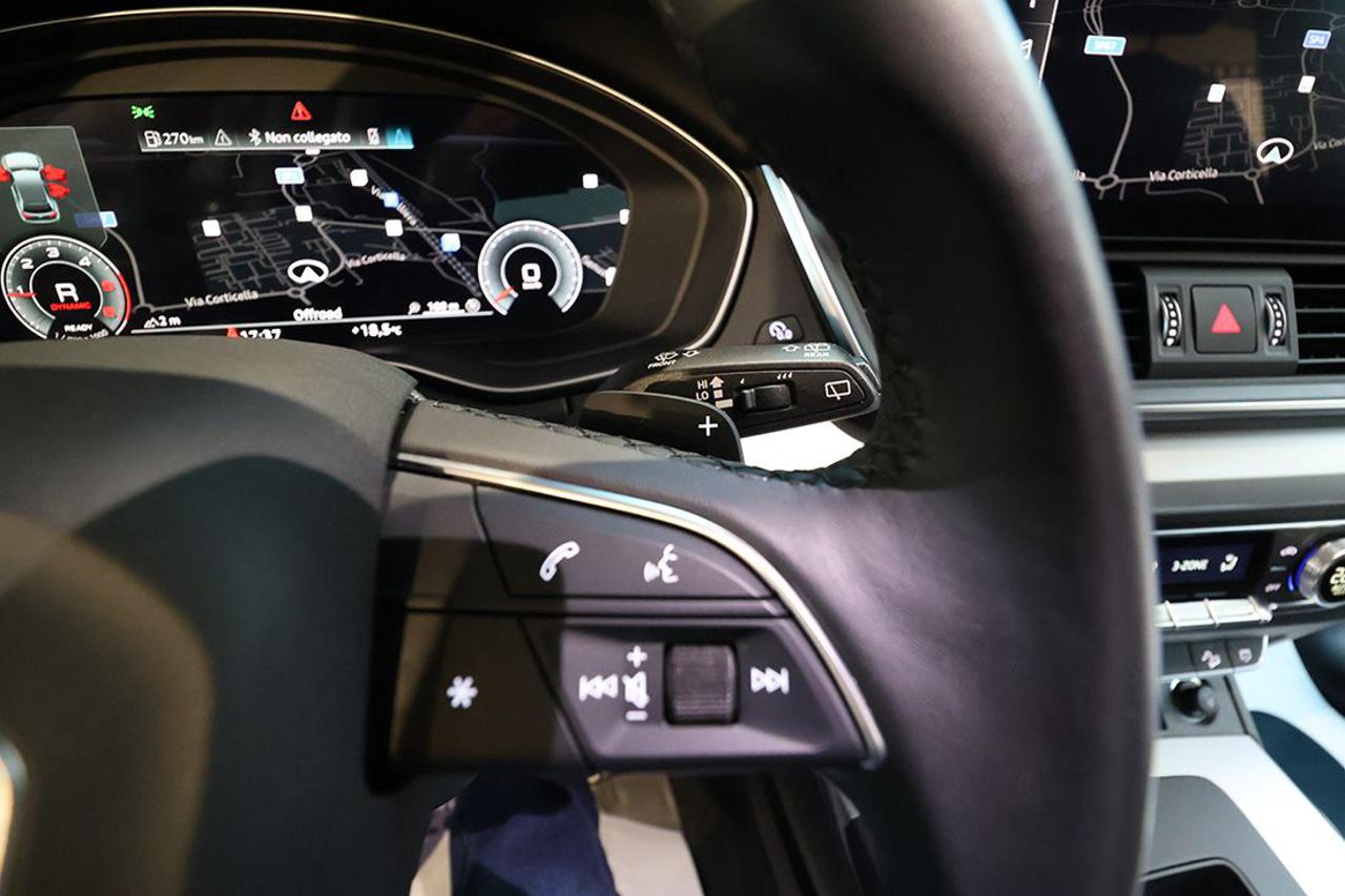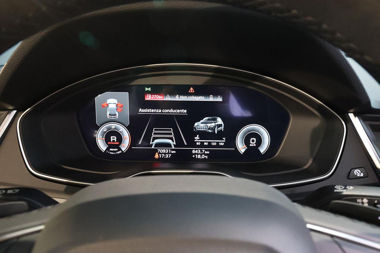 Cambio automatico S-Tronic Adaptive Cruise Control Appoggiabraccia centrale anteriore Comfort Assistenza alla partenza Audi Active Lane Assist Audi connect Navigation & Infotainment plus Audi Drive Select Audi Phone Box light Audi Pre-Sense Audi Smartphone Interface Audi Virtual Cockpit plus Bracciolo posteriore con dispositivo per il carico passante Cerchi in lega 18" a 5 razze Climatizzatore automatico Comfort a 3 zone Collision Avoid Assist Dispositivo di assistenza per proiettori abbaglianti Impianto Bluetooth Ingresso USB Mancorrenti cromati al tetto Navigatore satellitare MMI Plus con MMI Touch Pacchetto assistenza Tour Pacchetto esterno lucido Pacchetto luci ambiente Portellone vano bagagli ad apertura e chiusura elettrica Prese USB per i passeggeri posteriori Proiettori a LED con gruppi ottici posteriori a LED Radio digitale DAB Retrovisori esterni ed interno autoanabbaglianti Retrovisori esterni ripiegabili elettricamente e riscaldabili Riconoscimento della segnaletica stradale Sedili posteriori Plus Sensore luci Sensore pioggia Sistema di ausilio al parcheggio Plus, anteriore e posteriore Sistema di controllo pressione pneumatici Sistema di controllo velocità in discesa Sistema Isofix con disattivazione airbag passeggero Sistema per la chiamata di emergenza Streaming audio Bluetooth Supporto lombare elettrico Traffic Jam Assist Turn Assist Verniciatura completa in Grigio Manhattan Voice control Volante sportivo multifunzione Plus con bilanceri