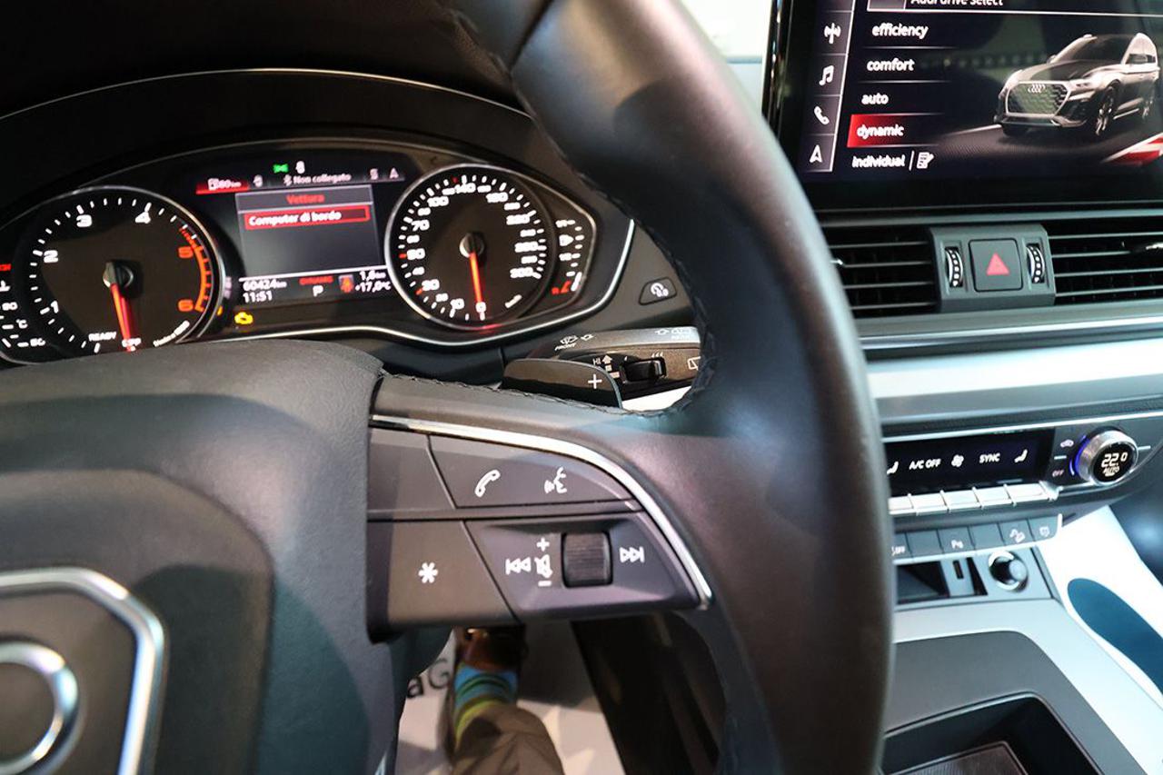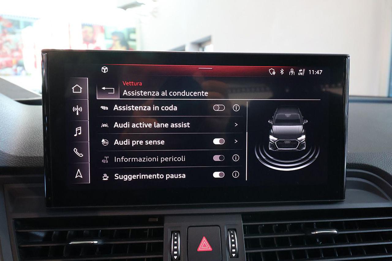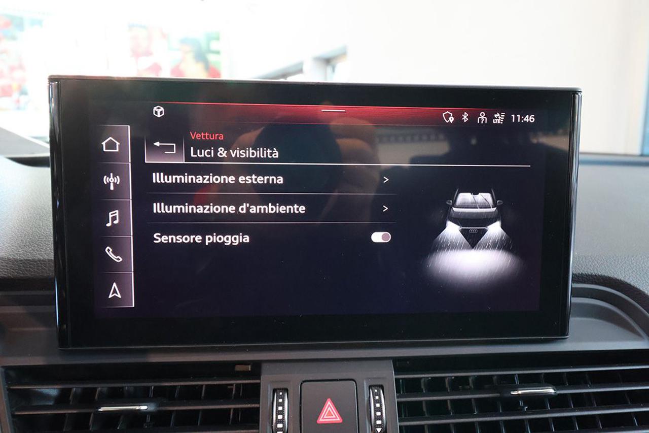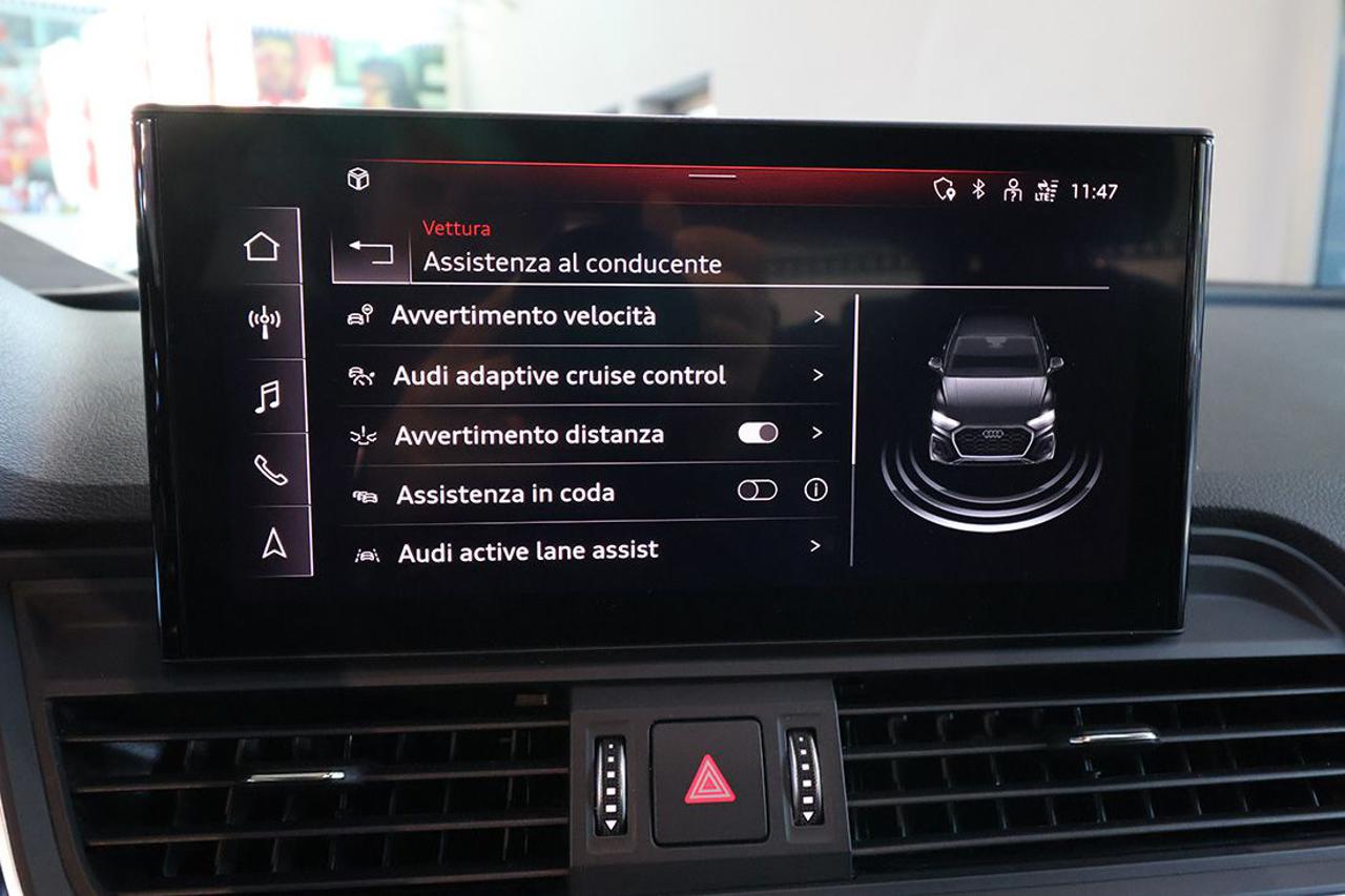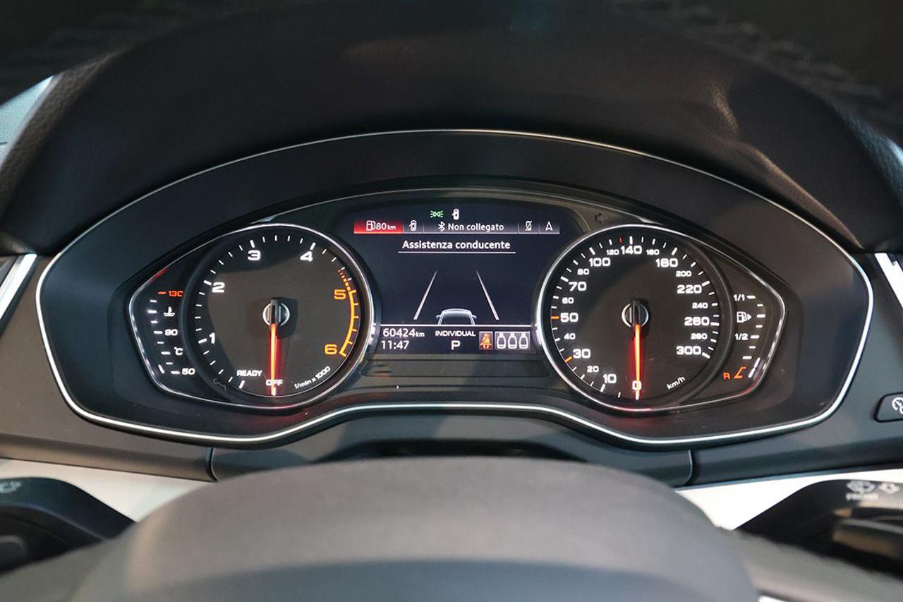 Cambio automatico S-Tronic Adaptive Cruise Control Appoggiabraccia centrale anteriore Comfort Assistenza alla partenza Audi Active Lane Assist Audi connect Navigation & Infotainment plus Audi Drive Select Audi Pre-Sense Bracciolo posteriore con dispositivo per il carico passante Cerchi in lega 18" a 5 razze parallele Climatizzatore automatico Comfort a 3 zone Collision Avoid Assist Dispositivo di assistenza per proiettori abbaglianti Impianto Bluetooth Ingresso USB Mancorrenti cromati al tetto Navigatore satellitare MMI Plus con MMI Touch Pacchetto assistenza Tour Pacchetto luci ambiente Portellone vano bagagli ad apertura e chiusura elettrica Proiettori a LED con gruppi ottici posteriori a LED Radio digitale DAB Retrovisori esterni ed interno autoanabbaglianti Retrovisori esterni ripiegabili elettricamente e riscaldabili Riconoscimento della segnaletica stradale Sensore luci Sensore pioggia Sistema di ausilio al parcheggio Plus, anteriore e posteriore Sistema di controllo pressione pneumatici Sistema di controllo velocità in discesa Sistema di informazioni per il conducente con display a colori Sistema Isofix con disattivazione airbag passeggero Sistema per la chiamata di emergenza Streaming audio Bluetooth Supporto lombare elettrico Traffic Jam Assist Turn Assist Voice control Volante sportivo multifunzione Plus con bilanceri