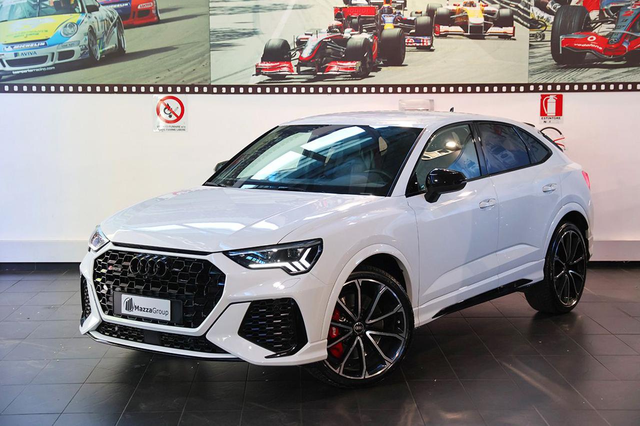 Cambio automatico S-Tronic Adaptive Cruise Control Adaptive Drive Assist Assistenza alla partenza Audi connect navigation & infotainment plus Audi Drive Select Audi Phone Box light Audi Pre Sense Audi Smartphone Interface Audi Virtual Cockpit plus Battitacchi con inserto in alluminio con logo RS Q3 illuminato Cerchi in lega Audi Sport 21" con design polygon a 5 razze a V, nero antracite, torniti lucidi Chiave comfort con antifurto Climatizzatore automatico a 3 zone Dispositivo di assistenza per proiettori abbaglianti Emergency Assist Impianto audio SONOS con sonorità 3D Impianto di scarico sportivo RS Impianto Bluetooth Ingressi USB per i sedili anteriori e posteriori Inserti alla plancia in finitura piano black Lane Change Warning Lane Departure Warning Lavafari Navigatore satellitare MMI Plus con MMI Touch Pacchetto assistenza Pacchetto Dynamic Pacchetto look nero ampliato Pacchetto luci d'ambiente - 30 colori Pacchetto Pelle Nappa RS rosso Panca posteriore plus Pinze dei freni verniciate in rosso Portellone vano bagagli ad apertura e chiusura elettrica Proiettori a LED Audi Matrix con gruppi ottici posteriori a LED Radio digitale DAB Retrovisori esterni ed interno autoanabbaglianti Retrovisori esterni ripiegabili elettricamente e riscaldabili Riconoscimento segnali stradali tramite telecamera Sedili anteriori riscaldabili elettricamente Sedili regolabili elettricamente Sedili sportivi RS Sensore luci Sensore pioggia Sistema di ausilio al parcheggio plus, anteriore e posteriore Sistema di controllo pressione pneumatici Sistema Isofix con disattivazione airbag passeggero Sistema per la chiamata di emergenza Sospensioni sportive RS plus con regolazione elettronica degli ammortizzatori Streaming audio Bluetooth Supporto lombare elettrico Telecamera posteriore Vetri posteriori e lunotto oscurati Voice control Volante sportivo multifunzione Plus con bilancieri