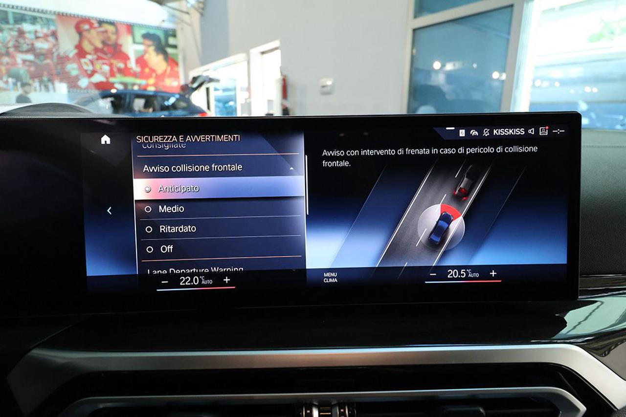 Cambio automatico Steptronic Active Guard Plus Ambient Light Android Auto/Apple CarPlay Avviso anti-collisione pedoni Avviso e frenata in caso di collisione BMW Connected Package Professional BMW Live Cockpit Professional con funzione di navigazione "touchscreen" BMW Performance Control Bracciolo posteriore con dispositivo per il carico passante Bulloni antifurto Cerchi in lega M 18" Styling 848 Climatizzatore automatico tri-zona Cruise control con funzione freno Fari Bi-LED Head-Up Display Hold Assist Impianto HiFi amplificato Interfaccia Bluetooth Interfaccia USB Lane Departure Warning Mascherina frontale in Black High Gloss Modanature interne in Legno Pregiato Ash Grey Brown lucido con profili in Pearl Chrome Pacchetto portaoggetti Parking Assistant Park Distance Control anteriore e posteriore Plancia portastrumenti in Sensatec Radio digitale DAB Retrovisori esterni ed interno autoanabbaglianti Retrovisori esterni ripiegabili elettricamente Sedili sportivi Sensore luci Sensore pioggia Serbatoio maggiorato Sistema di controllo pressione pneumatici Sistema Isofix con disattivazione airbag passeggero Sistema per la chiamata di emergenza Speed Limit Info Streaming audio Bluetooth Supporto lombare elettrico per il conducente Telecamera posteriore Variable Sport Steering Vetri posteriori e lunotto oscurati Voice control Volante sportivo multifunzione MSport con paddle