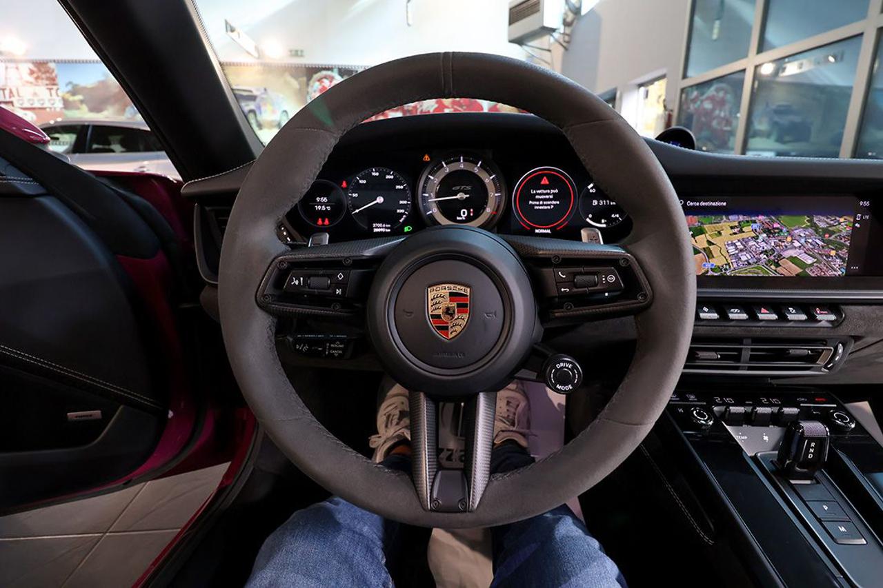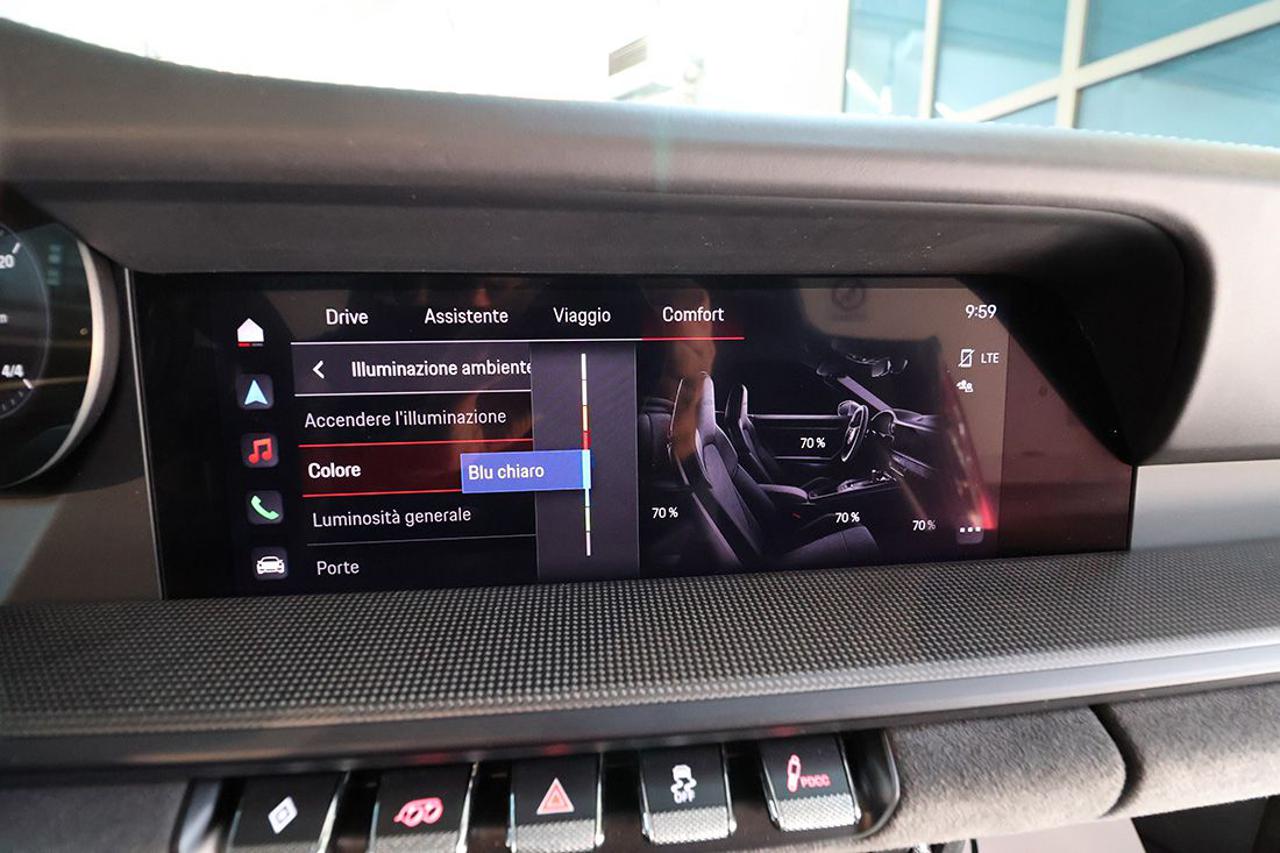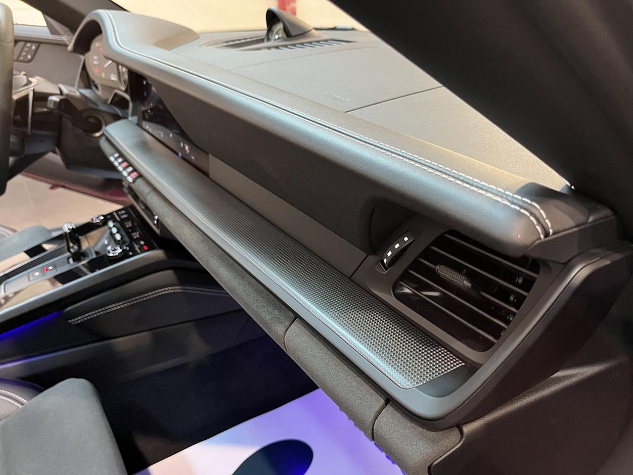Adaptive Cruise Control Asse posteriore sterzante BOSE Surround Sound System Composto sigillante per pneumatici e compressore d'aria elettrico Fari principali a LED con tecnologia Matrix, scuri, incl. Porsche Dynamic Light System Plus Fari posteriori Exclusive Fascia grigia sulla parte superiore del parabrezza Lane Change Assist Listelli sottoporta in carbonio opaco, illuminati Luci di cortesia a LED sulle portre con logo PORSCHE Minigonne laterali SportDesign verniciate in nero (opaco) Pacchetto interni GTS Pacchetto interni in carbonio opaco Pacchetto Light Design Pinze freno verniciate in nero lucido Porsche Dynamic Chassis Control (PDCC) Porsche Entry Quadrante strumentazione in color gesso Riscaldamento dei sedili anteriori Schienale sedili sportivi Plus in pelle con inserto decorativo in carbonio opaco Sedili sportivi adattivi Plus, elettrici a 18 vie, con pacchetto Memory Serbatoio da 90 litri Servosterzo Plus Specchietti esterni ripiegabili elettricamente inclusa illuminazione di cortesia Specchietti retrovisori esterni ed interno con antiabbagliante automatico e sensore pioggia integrato Stemma Porsche sul coperchio del vano portaoggetti in Race-Tex Tappo serbatoio Exclusive Design Volante sportivo GT riscaldabile in Race-Tex con finiture in carbonio opaco