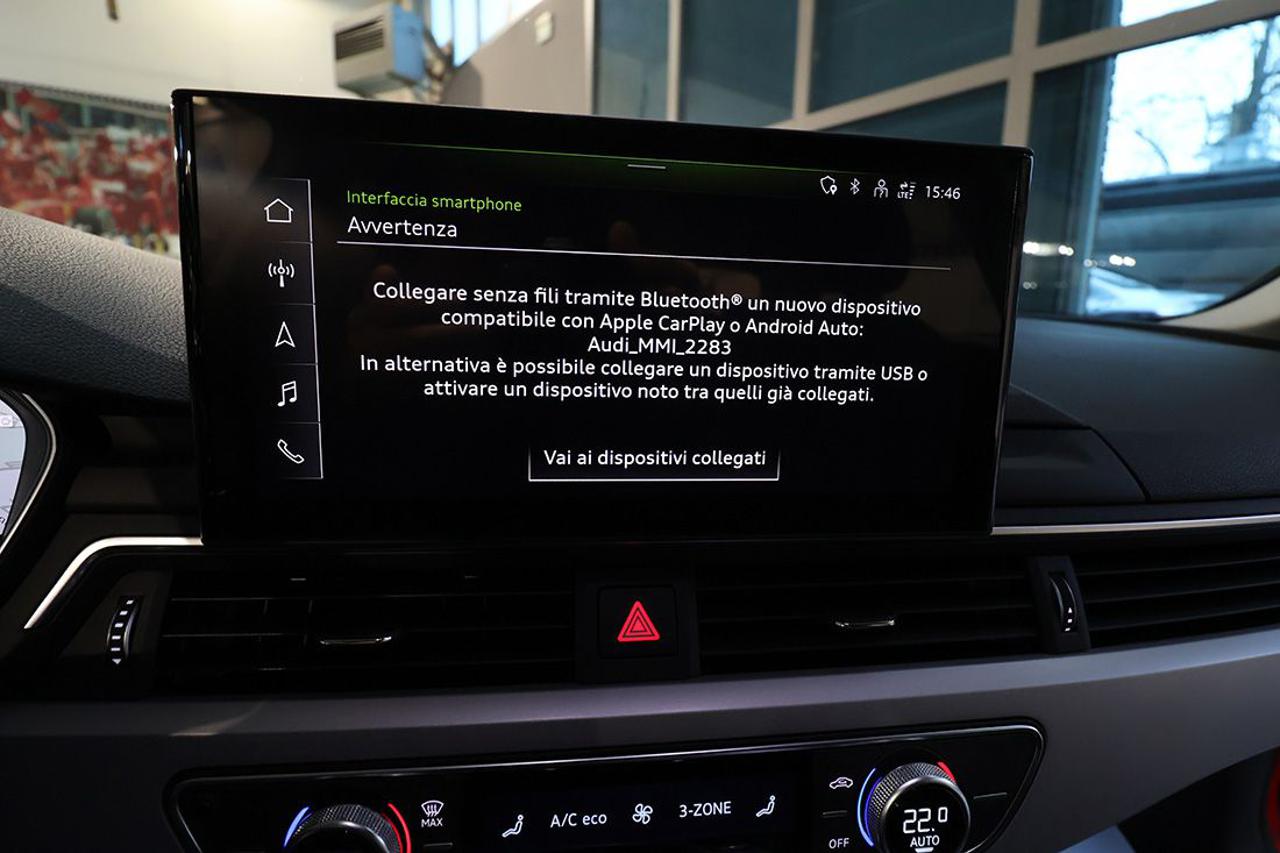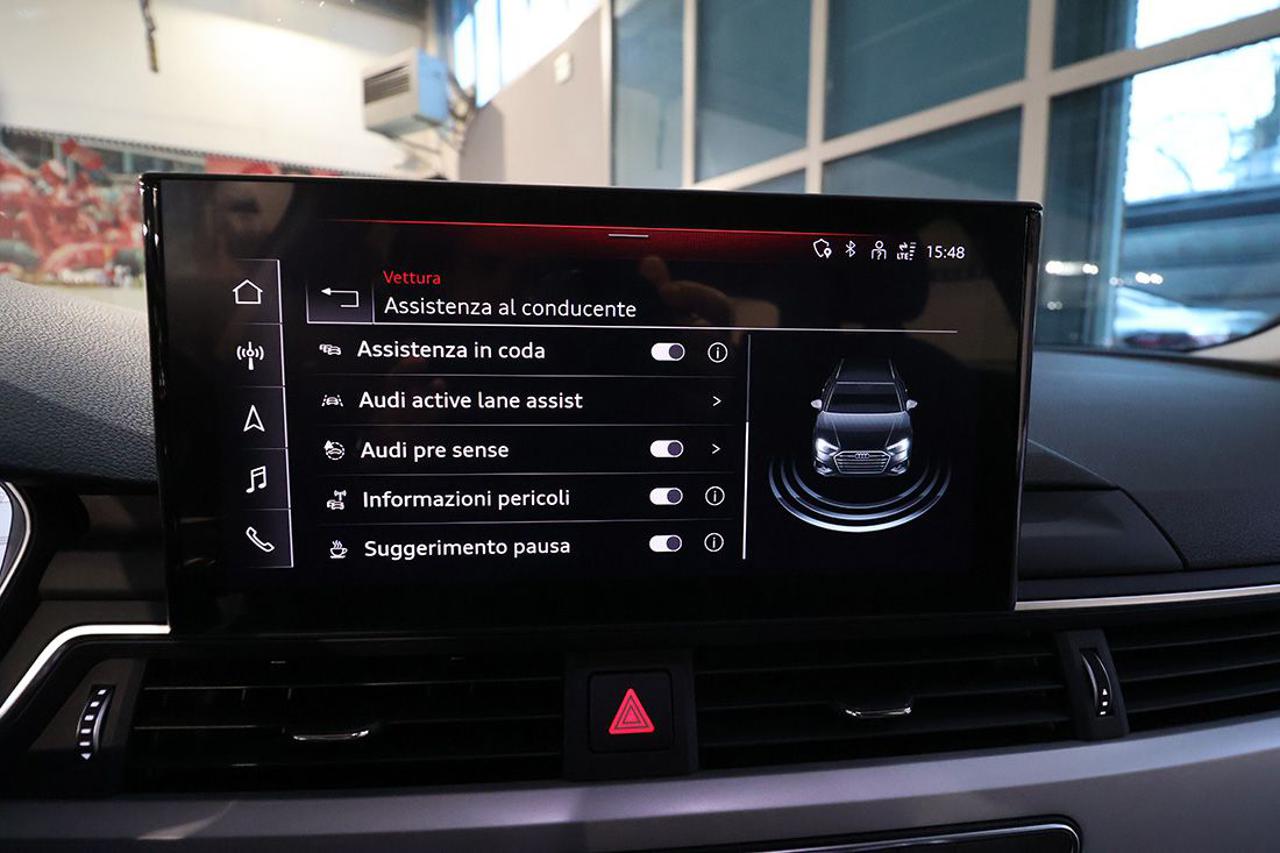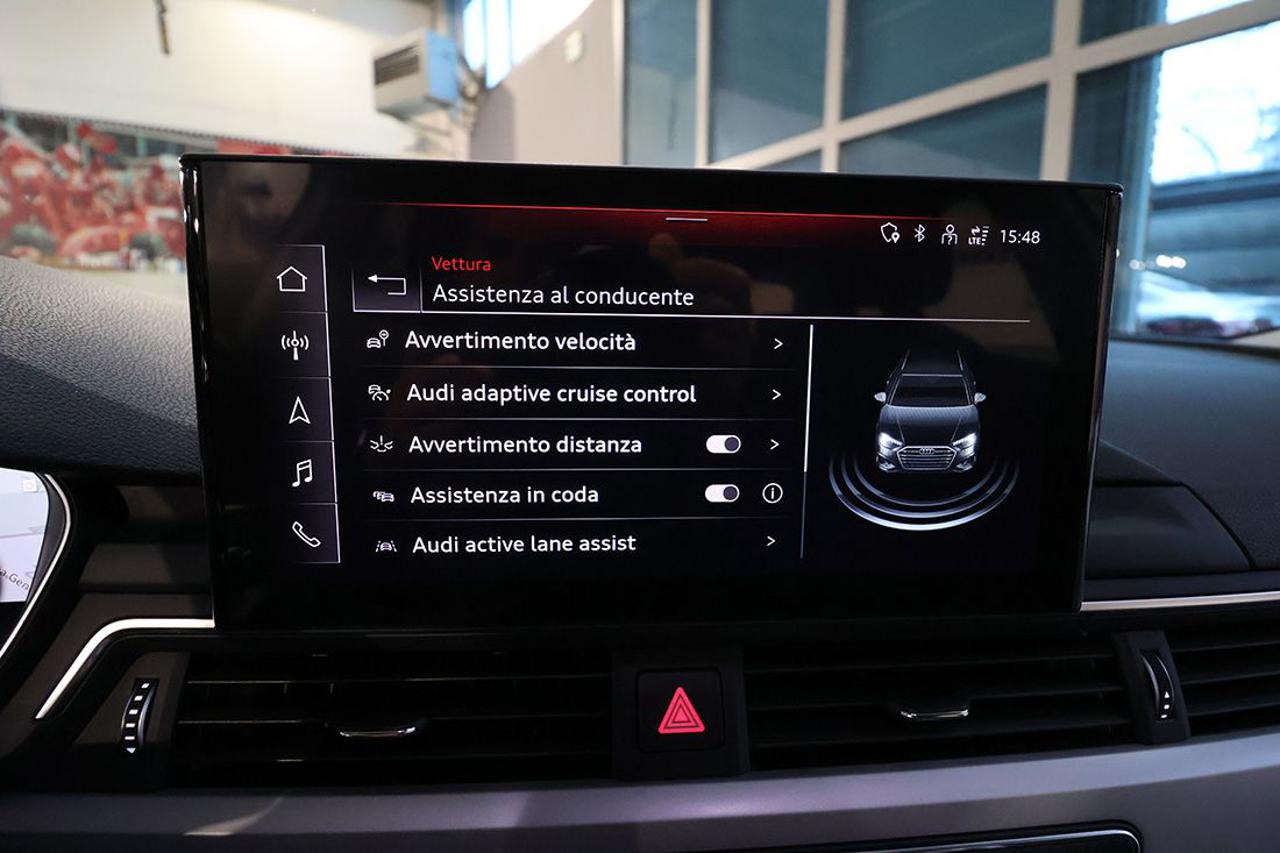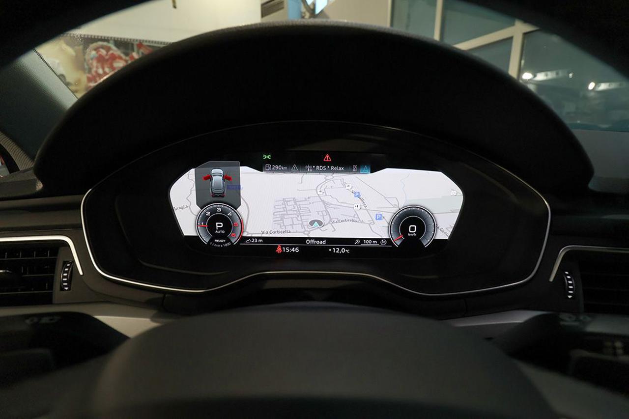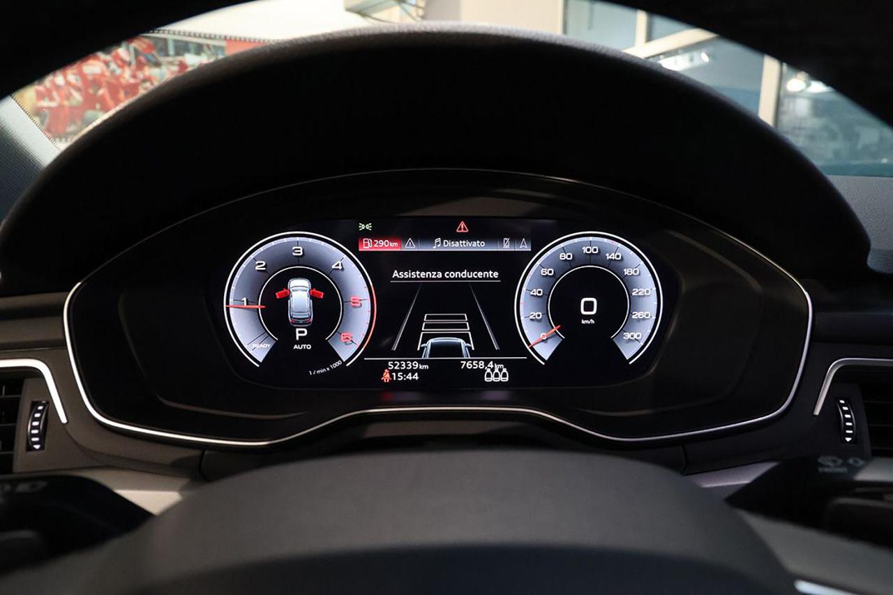 Cambio automatico S-Tronic Adaptive Cruise Control Appoggiabraccia centrale anteriore comfort Audi Active Lane Assist Audi Virtual Cockpit plus Audi connect Navigation & Infotainment plus Audi Drive Select Audi Pre-Sense Audi Smartphone Interface Bracciolo posteriore con dispositivo per il carico passante Cerchi in lega 18" a 5 razze doppie a stella Climatizzatore automatico Comfort a 3 zone Collision Avoid Assist Dispositivo di assistenza per proiettori abbaglianti Impianto Bluetooth Ingresso USB Mancorrenti cromati al tetto Navigatore satellitare MMI Plus con MMI Touch Pacchetto assistenza Tour Pacchetto esterno lucido Pacchetto Evolution Pacchetto luci Portellone vano bagagli ad apertura/chiusura elettrica Prese USB (2) al posteriore Proiettori Full LED con gruppi ottici posteriori a LED Radio digitale DAB Retrovisori esterni ed interno autoanabbaglianti Retrovisori esterni ripiegabili elettricamente e riscaldabili Riconoscimento della segnaletica stradale Ruota di scorta minispare Sensore luci Sensore pioggia Sistema di ausilio al parcheggio plus, anteriore e posteriore Sistema di controllo pressione pneumatici Sistema Isofix con disattivazione airbag passeggero Sistema per la chiamata di emergenza Specchietti di cortesia illuminati Streaming audio Bluetooth Supporto lombare elettrico Traffic Jam Assist Turn Assist Voice control Volante sportivo multifunzione plus con bilanceri