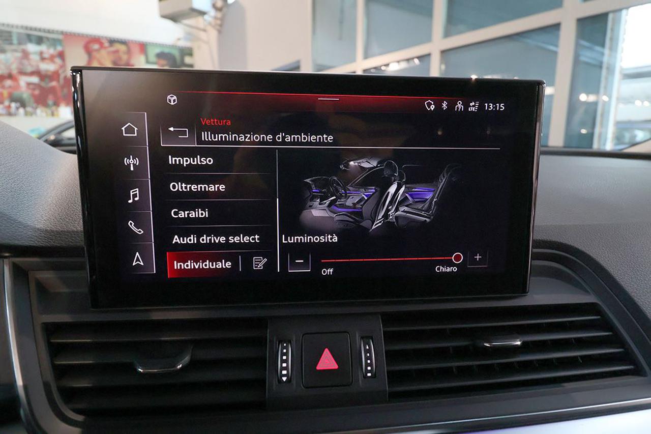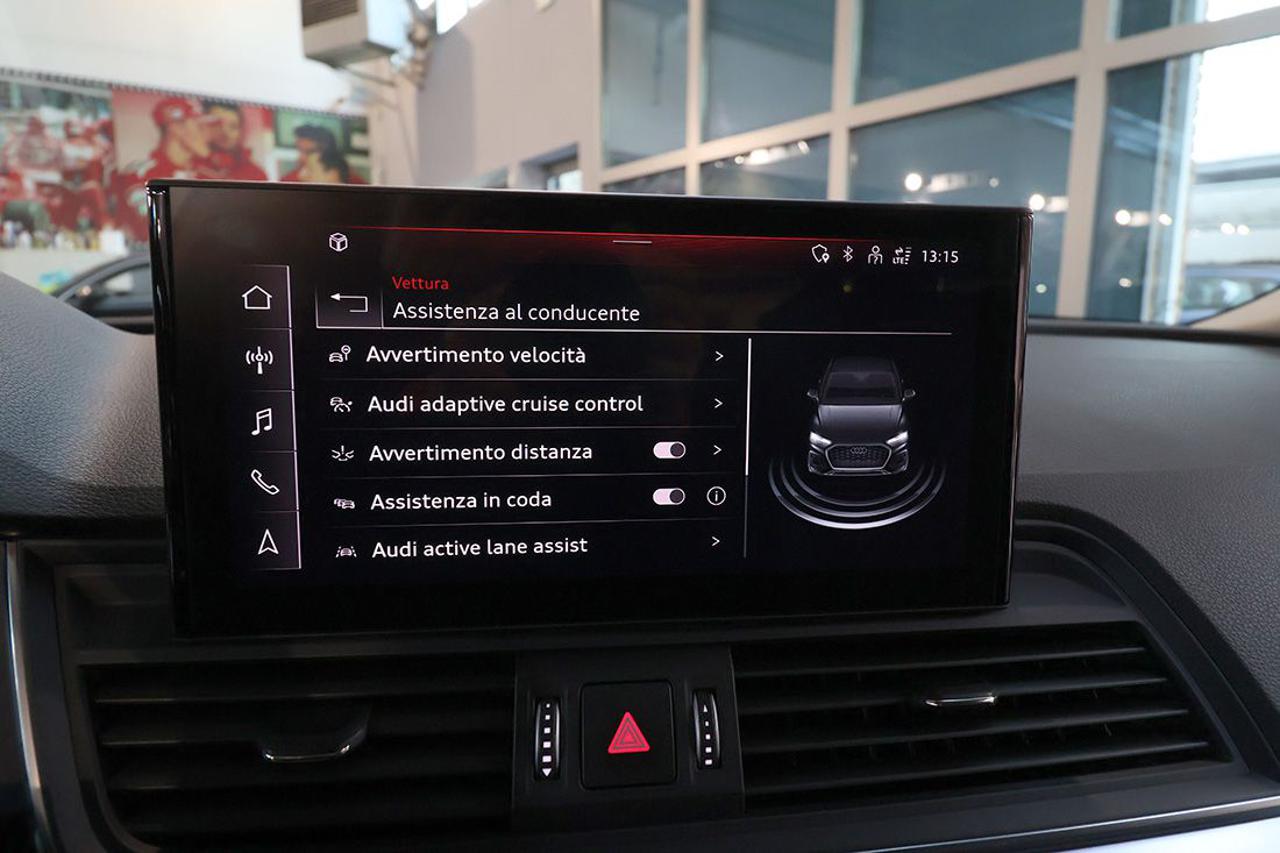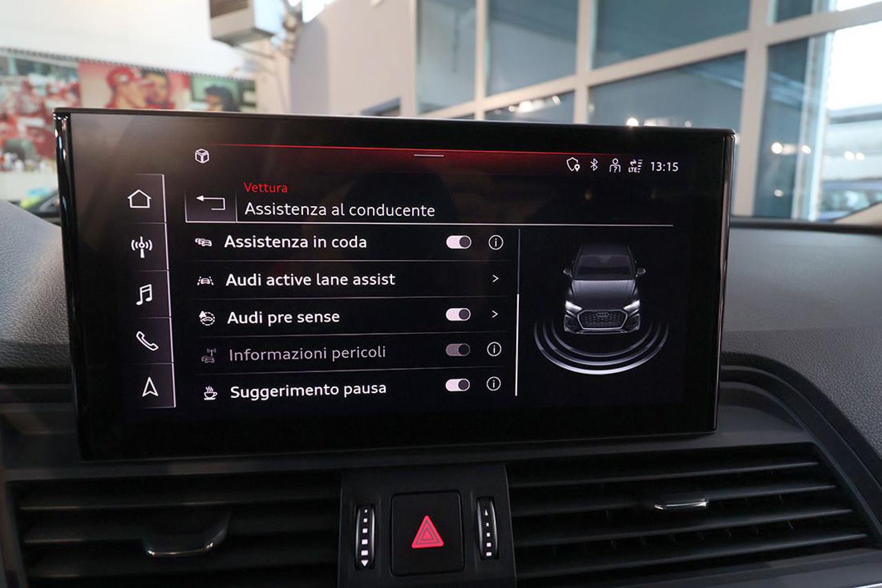 Cambio automatico S-Tronic Adaptive Cruise Control Appoggiabraccia centrale anteriore Comfort Assetto sportivo Assistente al parcheggio Assistenza alla partenza Audi Active Lane Assist Audi connect Navigation & Infotainment plus Audi Drive Select Audi Pre-Sense Audi Smartphone Interface Audi Soundsystem Audi Virtual Cockpit plus Bracciolo posteriore con dispositivo per il carico passante Cerchi in lega 20" Audi Sport 5 razze a V in nero antracite, torniti a specchio Chiave comfort con sbloccaggio portellone vano bagagli tramite sensori Climatizzatore automatico Comfort a 3 zone Collision Avoid Assist Dispositivo di assistenza per proiettori abbaglianti Impianto Bluetooth Ingresso USB Lavafari Listelli sottoporta anteriori in alluminio con logo S line, illuminati Mancorrenti al tetto neri Navigatore satellitare MMI Plus con MMI Touch Pacchetto assistenza Tour Pacchetto esterno lucido nero plus Pacchetto luci ambiente plus Pacchetto S-Line exterior Pedane laterali esterne in acciaio inossidabile con inserti in gomma antiscivolo Portellone vano bagagli ad apertura e chiusura elettrica Prese USB per i passeggeri posteriori Proiettori Audi Matrix con gruppi ottici posteriori a LED Radio digitale DAB Retrovisori esterni ed interno autoanabbaglianti Retrovisori esterni ripiegabili elettricamente e riscaldabili Riconoscimento della segnaletica stradale basato su telecamera Sedili anteriori climatizzati Sedili anteriori regolabili elettricamente Sedili anteriori riscaldabili elettricamente Sedili posteriori plus Sedili sportivi Sensore luci Sensore pioggia Sistema di ausilio al parcheggio Plus, anteriore e posteriore Sistema di controllo pressione pneumatici Sistema di controllo velocità in discesa Sistema Isofix con disattivazione airbag passeggero Sistema per la chiamata di emergenza Streaming audio Bluetooth Supporto lombare elettrico Telecamera posteriore Telecamere a 360° Traffic Jam Assist Turn Assist Verniciatura completa per paraurti Vetri laterali anteriori acustici Vetri posteriori e lunotto oscurati Voice control Volante sportivo multifunzione Plus con bilanceri